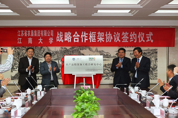 蘇墾農發(fā)股份公司與江南大學(xué)國家工程實(shí)驗室聚焦國際“大健康、大食品、大產(chǎn)業(yè)”前沿技術(shù),合作共建農產(chǎn)品精深加工聯(lián)合研究中心。江蘇農墾與江南大學(xué)有著(zhù)長(cháng)期而深厚的合作基礎,雙方建立全面戰略合作關(guān)系、共建農產(chǎn)品精深加工聯(lián)合研究中心,是雙方發(fā)揮各自?xún)?yōu)勢、推進(jìn)“產(chǎn)學(xué)研用”深度合作的重要舉措。研究中心圍繞優(yōu)勢互補、強強聯(lián)合,深入開(kāi)展協(xié)同創(chuàng )新,共同打造全省農產(chǎn)品精深加工、農產(chǎn)品質(zhì)量安全、農業(yè)物聯(lián)網(wǎng)應用的示范基地和校企緊密合作的新典范。雙方以此為起點(diǎn),將戰略合作向更深領(lǐng)域、更高層次推進(jìn),深度整合、共享科技資源和產(chǎn)業(yè)資源,共同為全省乃至全國農業(yè)現代化建設作出更大貢獻。
