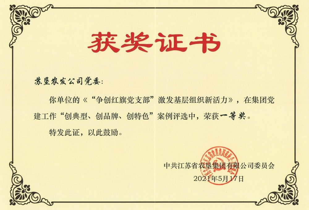 • 近日,由蘇墾農發(fā)黨委報送的《以黨建為引領(lǐng) 以創(chuàng )建為抓手 凝聚推動(dòng)高質(zhì)量發(fā)展強大動(dòng)力》榮獲“江蘇省國資系統以高質(zhì)量黨建引領(lǐng)國企高質(zhì)量發(fā)展100案例”一等獎;《“爭創(chuàng )紅旗黨支部”激發(fā)基層組織新活力》在集團黨建工作“創(chuàng )典型、創(chuàng )品牌、創(chuàng )特色”案例評選中榮獲一等獎。這些榮譽(yù)的獲得充分肯定了近年來(lái)農發(fā)公司黨委理論學(xué)習中心組學(xué)習所取得的積極成效。