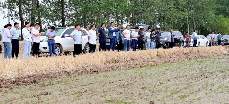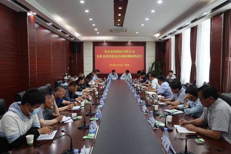 • 6月4日,蘇墾農發(fā)股份公司玉米大豆帶狀復合種植現場(chǎng)推進(jìn)會(huì )在黃海召開(kāi)。蘇墾農發(fā)種植業(yè)管理中心總經(jīng)理徐啟來(lái)出席會(huì )議并講話(huà),蘇墾農發(fā)黃海分公司總經(jīng)理陳守軍陪同觀(guān)摩。東辛、崗埠、云臺、黃海、濱淮、新曹分公司分管副總經(jīng)理、農業(yè)中心主任及農機負責人參加。