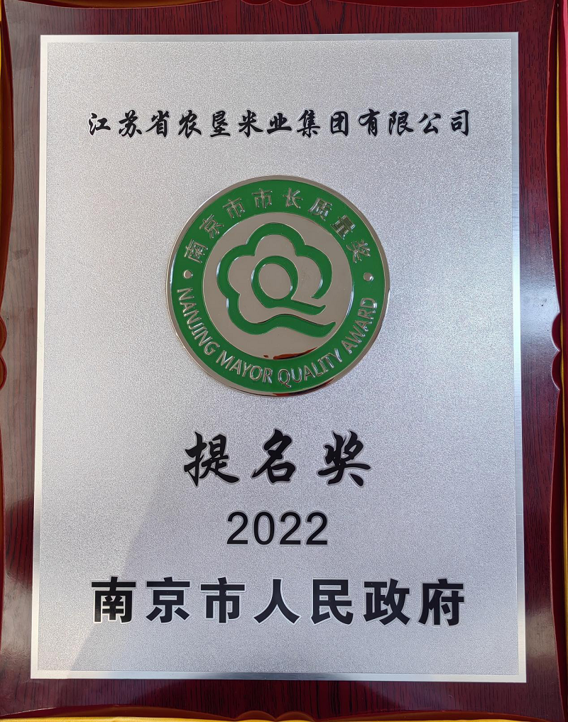 6月2日,2022年度南京市市長(cháng)質(zhì)量獎名單正式揭曉,蘇墾米業(yè)榮獲2022年度南京市市長(cháng)質(zhì)量獎(組織)提名獎。