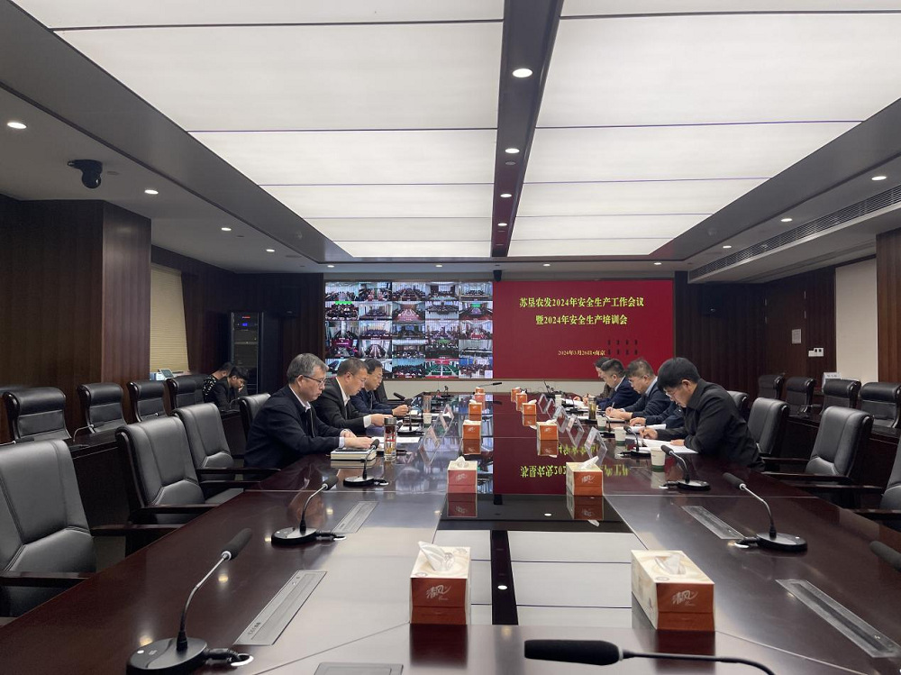 3月26日下午14時(shí)30分,蘇墾農發(fā)召開(kāi)2024年安全生產(chǎn)工作會(huì )議暨2024年安全生產(chǎn)培訓會(huì ),會(huì )議以視頻會(huì )議方式召開(kāi),主會(huì )場(chǎng)設在蘇墾大廈1208會(huì )議室,各分、子公司和農科院設分會(huì )場(chǎng),公司安委會(huì )成員,分、子公司和農科院安委會(huì )(安全生產(chǎn)領(lǐng)導小組)成員、安全員參加了本次會(huì )議。會(huì )議由公司總裁、安委會(huì )主任丁濤主持。