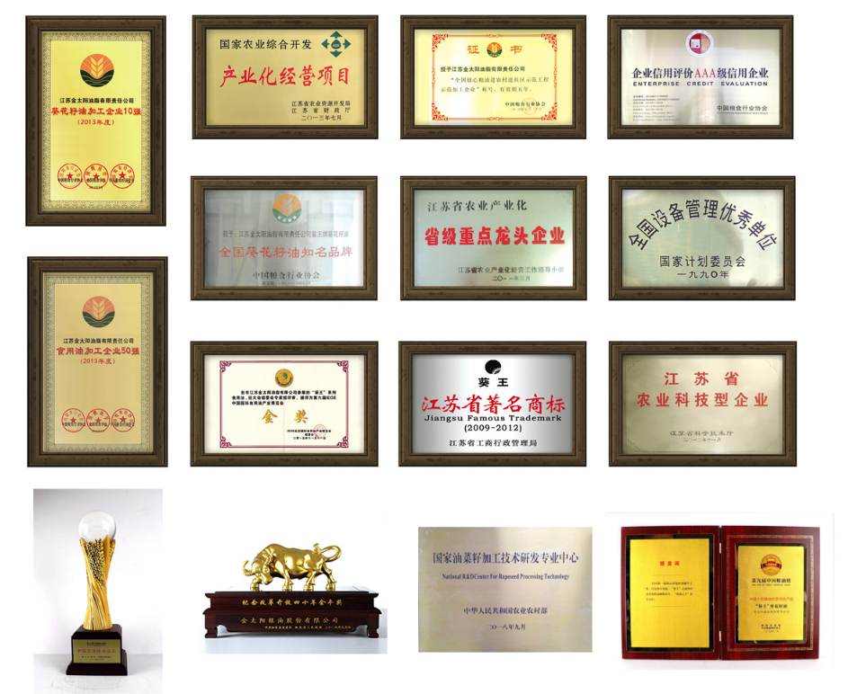 金太陽(yáng)糧油以綠色健康為生命,實(shí)現全程質(zhì)量控制體系生產(chǎn)過(guò)程全覆蓋,用國企擔當切實(shí)守護國人餐桌健康。強化產(chǎn)品研發(fā)與改良,依托蘇墾農發(fā)全產(chǎn)業(yè)鏈發(fā)展優(yōu)勢,聯(lián)合江南大學(xué)、河南工業(yè)大學(xué)等共同研發(fā)稻米油等系列新產(chǎn)品,為廣大消費者提供更多更優(yōu)的選擇。經(jīng)過(guò)多年創(chuàng )新發(fā)展,金太陽(yáng)現已成為農業(yè)產(chǎn)業(yè)化國家重點(diǎn)龍頭企業(yè)、國家農業(yè)綜合開(kāi)發(fā)重點(diǎn)項目企業(yè)、全國首批放心糧油加工示范企業(yè),中國好糧油加工示范企業(yè),是“國家油菜籽加工技術(shù)專(zhuān)業(yè)研發(fā)中心”。已通過(guò)中國綠色食品、有機食品、江蘇精品等認證,中國糧食行業(yè)協(xié)會(huì )AAA級信用企業(yè),成長(cháng)為食用油行業(yè)“小巨人”。