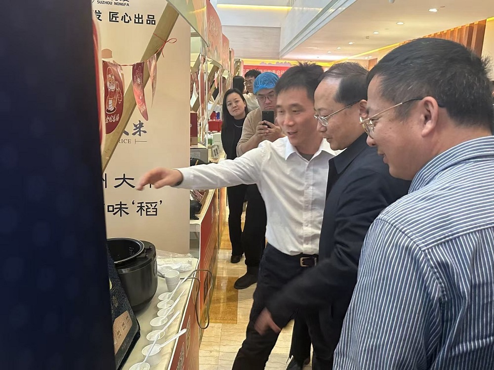 查穎冬副市長(cháng)聽(tīng)取工作人員“蘇墾15度鮮大米”介紹
